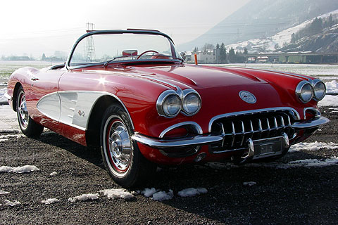 Chevrolet Corvette 1959,rot - weiss - rot,sehr schön original und unverbastelt, frisch ab MFK mit Garantie.Verkauft